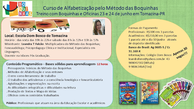 Dias 14 e 15/06: Curso "Método das Boquinhas" - Reabilitação dos Distúrbios da Leitura e Escrita