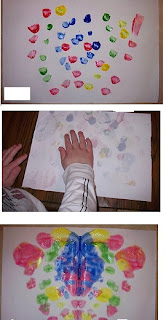 Pintura com pingos de tintas e depois dobrar o papel ao meio