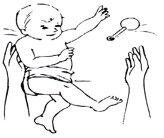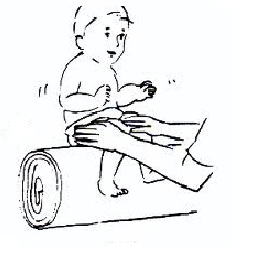 Deite a criança de costas e, segurando-a pelos ombros ou cotovelos, levante-a um pouco e devagar, depois volte à posição deitada. Este exercício só deve ser feito se a criança já tem o controle da cabeça. Não use esta posição para colocar a criança sentada.