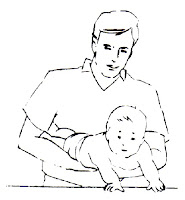 Deite-se no chão, de costas e coloque o bebê de bruços sobre seu peito. Segurando seus dedos, a criança faz um esforço para erguer a cabeça e as costas
